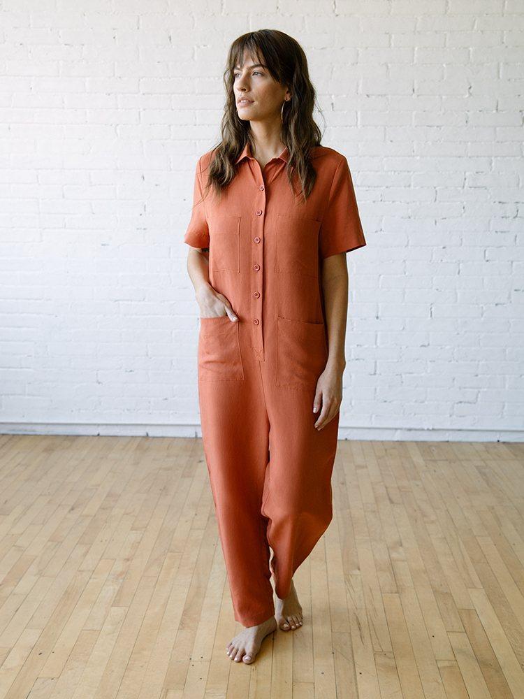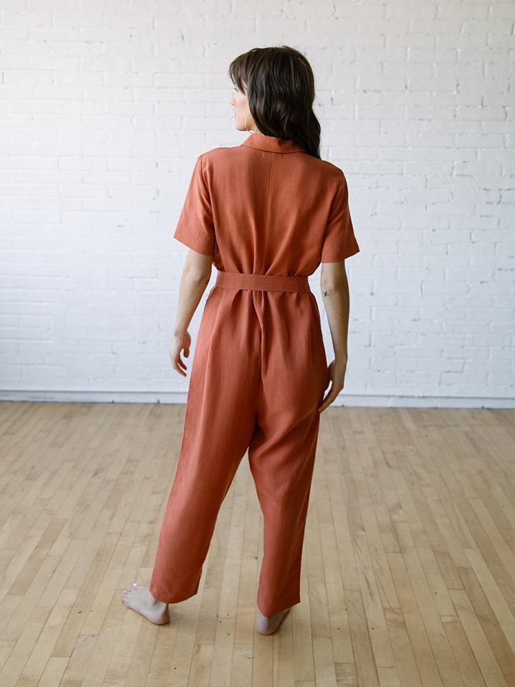 Introducing the archival-inspired jumpsuit of your dreams. The Finn is made of sustainable linen and Tencel fabric with coverall details like deep patch pockets. Comes with a sash belt (and no belt loops) so you can choose where to cinch it. Relaxed fit through the hip and thigh for max comfort. The slightly cropped hem is easy to cuff. Add earrings and heels for a night out or wear with sneakers or slides for weekend errands. A timeless, well-made essential to live in now and love forever.